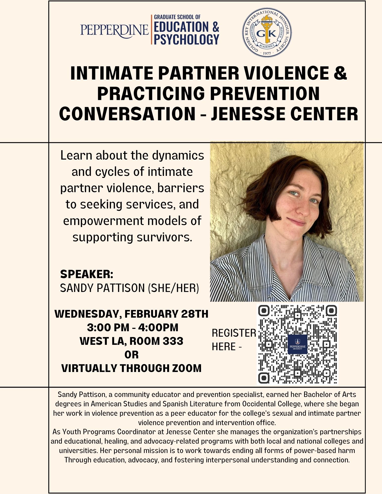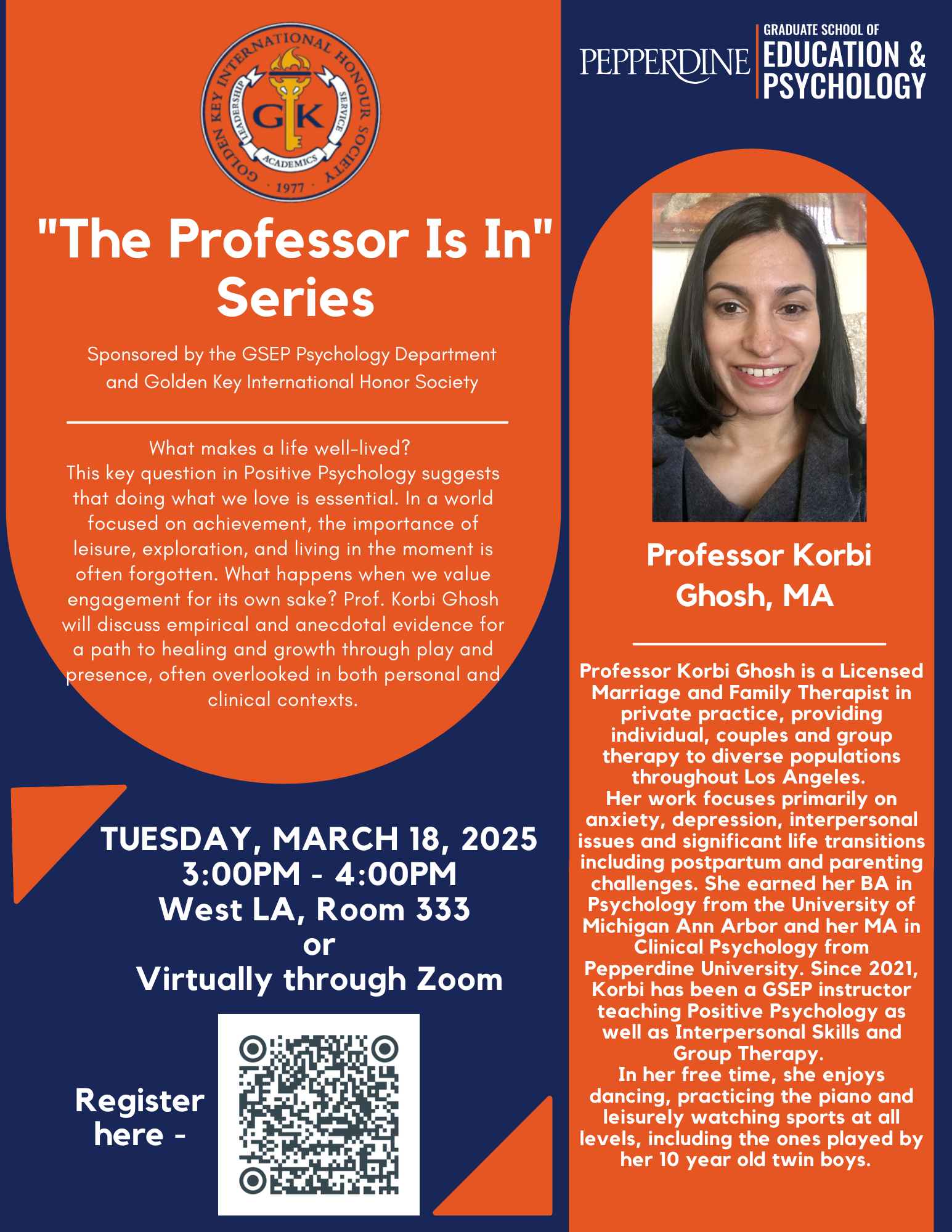 The Golden Key Chapter at Pepperdine University was chartered in March 1989 as part of U.S. Region 8, which includes institutions in Arizona, California, Hawai’i, Nevada, Oregon, and Washington. The Pepperdine University Golden Key Chapter believes in excellence and strives to provide the best environment for guiding our Golden Key members to succeed through academics, leadership, and service.