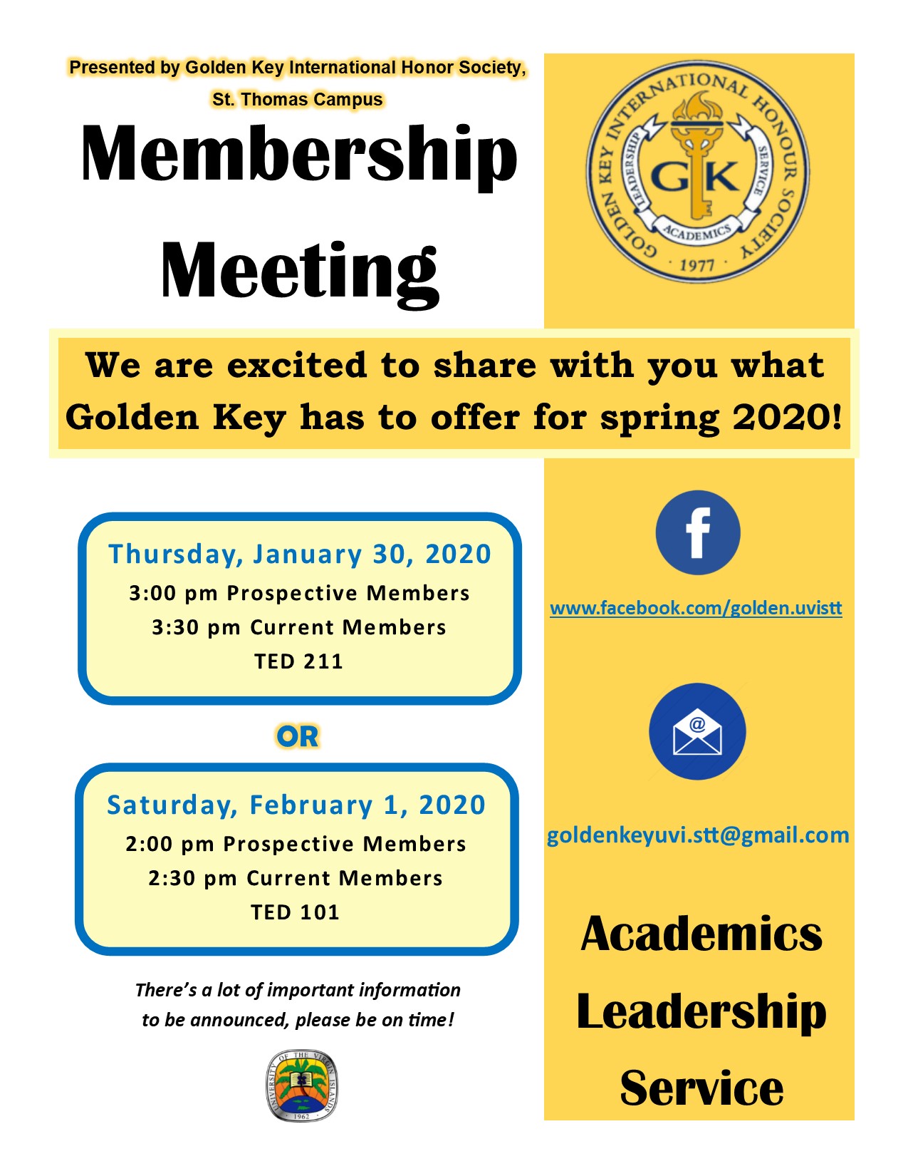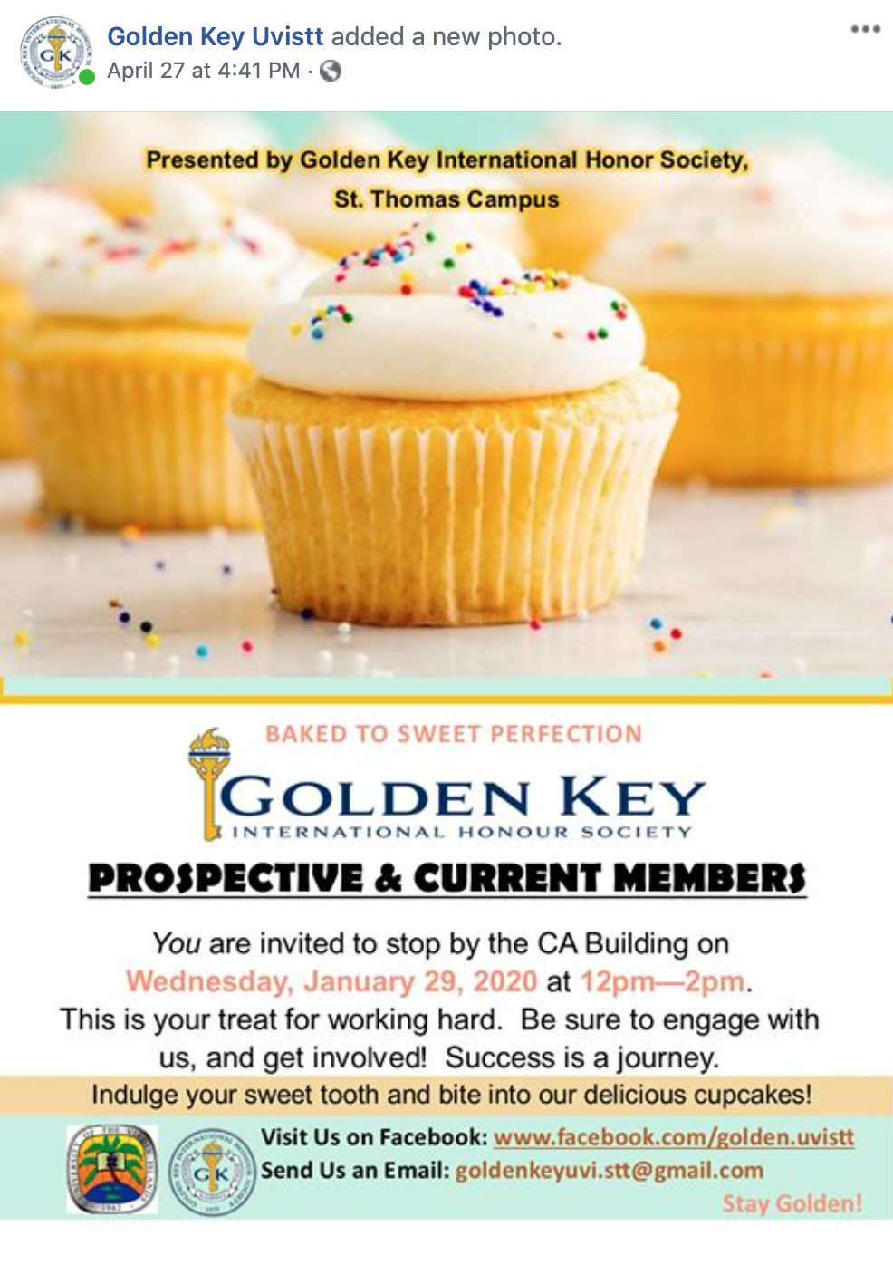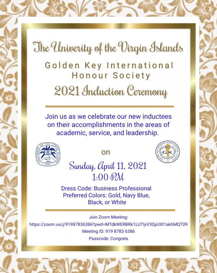 The University of the Virgin Islands-St. Thomas chapter strives to make Golden Key an integral part of its members’ future success, promoting achievement in academics, leadership and service. The 231st Golden Key chapter, UVIST was chartered on May 12, 1995, as a part of U.S. Region 3, which includes schools in Georgia, Florida, Alabama, Puerto Rico, and the U.S. Virgin Islands.